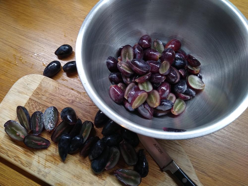 It's always the same heartbreaking story: You saw the luscious,seductive display of those opalescent orbs of jammy juiciness in the produce department, and you kinda lost control. The memory of smooth cold on your tongue, the way the skin resists slightly as you bite into it, then the flesh giving itself to you, shy but willing... You buy three cello bags, one in each color -- green, black, red -- all seedless, and a wedge of nice cheese, some crackers. *** They don't look as sexy in your refrigerator. *** Three days later, you have now eaten exactly 23 grapes and the cheese is gone. Another week goes by, and another. In the end, you must admit to yourself that it isn't working, and you must part ways. You tenderly remove the cello bags, in which the dull, moldy remains of the greatest love you have ever felt (recently) in a supermarket, wait for the inevitable, leaving a hole in your heart and your fridge. One day, another fruit will occupy those voids, maybe a honeydew or even a mango. Today, though, is for mourning and self-reflection. And compost. *** After some time has gone by, you may want to try again with grapes, and I want to help you have a more successful relationship this time around. All it takes is the right tools, and a little time! Almost everyone I know has a food dehydrator, lurking about in a closet or shed, usually one of those plastic stackable ones. I have one of those, and I recently purchased a used 6-tray Dehyber for $40. Now, when I lose my mind over some fresh little pieces of fruit, I have no qualms about picking them up and taking them home with me! Here's my "recipe" for Raisins d'etre: Before they get gray and wrinkly and lose your affection forever, wash your grapes and slice them in half. Place them, cut side down, on the dehydrator trays. (I like to make fun grape art with the different colored grapes on the tray.) The fancy Dehyber has temperature control and a timer, and I use the just-below-middle setting, around 145 degrees F. I set the timer on 12 hours, and go do other things. (In the other little dehydrator, nothing really changes, though you may want to check them more often, and don't forget your kitchen timer!) I start removing any that are at (my) optimal chewiness around ten hours. Use a small fork to gently pry them off the trays if needed. We use them in oatmeal, baked goods, and of course they're yummy healthy snacks all by themselves!